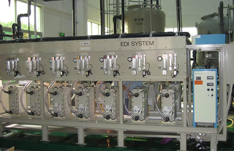 根據(jù)用戶提供的要求、技術(shù)交流要求、現(xiàn)場場地要求,以及現(xiàn)有工藝的綜合考慮,確定項目的處理工藝,處理工藝一般采用多介質(zhì)過濾系統(tǒng)+活性炭過濾器+超濾+反滲透系統(tǒng)(一級、二級)+EDI交換系統(tǒng)等膜法處理工藝。多介質(zhì)過濾系統(tǒng)作為預(yù)處理系統(tǒng),去除多余的雜質(zhì)及 SS;反滲透系統(tǒng)作為核心脫鹽系統(tǒng),去除水中大部分離子,用EDI裝置是電去離子凈水技術(shù)是一種將電滲析和離子交換相結(jié)合的脫鹽新工藝。保證出水水質(zhì)滿足用戶的用水要求。